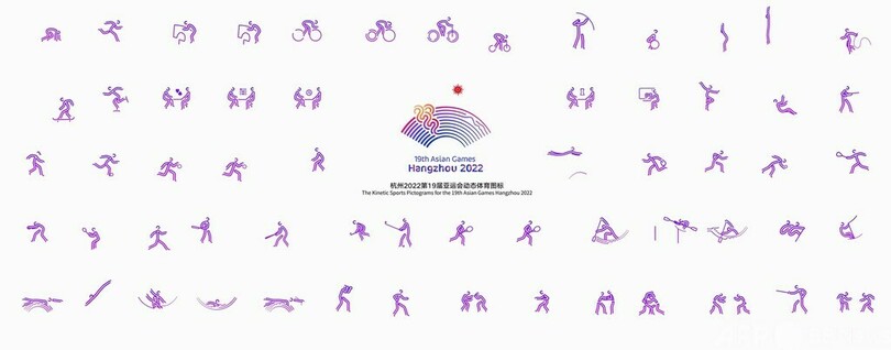 杭州アジア大会組織委員会はこれまでに発表された40競技、61種目のピクトグラムに加え、アジア大会史上初の動くスポーツピクトグラムを発表しました。動くスポーツピクトグラムは杭州アジア大会のメインイメージカラー、融合とだんらんを象徴するレインボーパープルを使い、スポーツピクトグラムの機能性をベースに、モーションキャプチャとゲームエンジンをデザインのコア技術として取り入れています。BGMは江南地方に伝わる民間音楽である「江南糸竹」に太鼓を溶け込ませ、江南水郷の趣とスポーツ競技の力を融合させています。