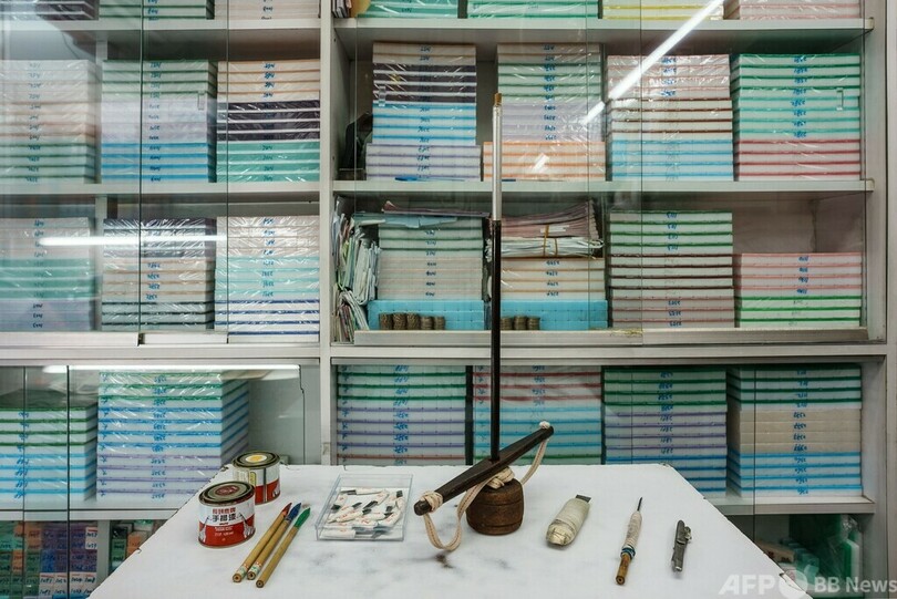 張さんは10代の頃から店で修業をし、牌作りに「青春をささげた」と語る。「数年後も仕事を続ける気力があるか分からないが、今のところは続けるつもりだ」