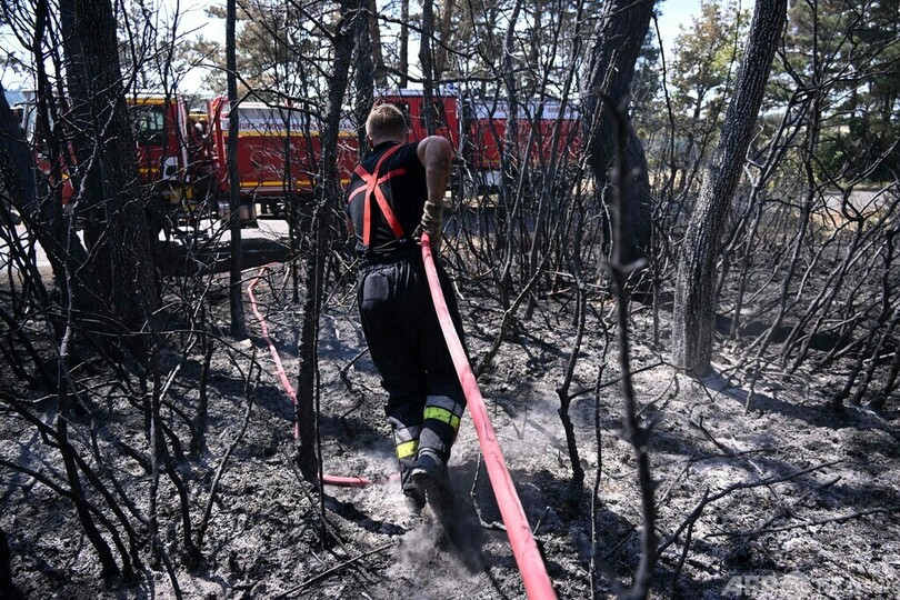 【8月15日 AFP】フランス南部ボワーヌ(Boyne)のグランコッス自然公園(Grands Causses Natural Park)で山火事が発生し、木々が激しく炎を上げる中、消防による消火活動が行われた。(c)AFP