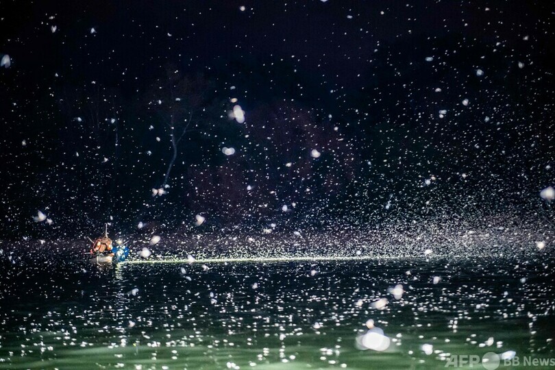 【8月14日 AFP】欧州を流れるドナウ(Danube)川で日没に舞うカゲロウの群れ。ハンガリーの首都ブダペスト北方のセンテンドレ(Szentendre)で9日、その幻想的な姿を捉えた。