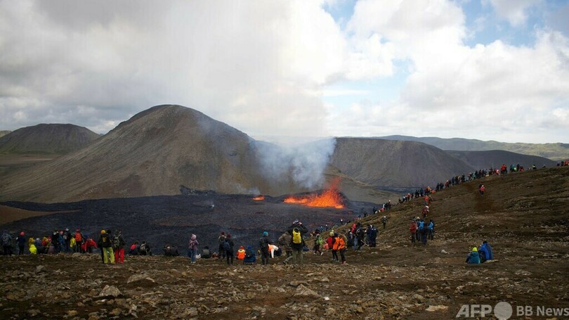 【8月12日 AFP】アイスランドの首都レイキャビクから40キロほど離れたメラタリル(Meradalir)渓谷に、今月3日に噴火した火山を一目見ようと大勢が集まっている。皆、険しいでこぼこの山道を数時間かけて登りやって来る。