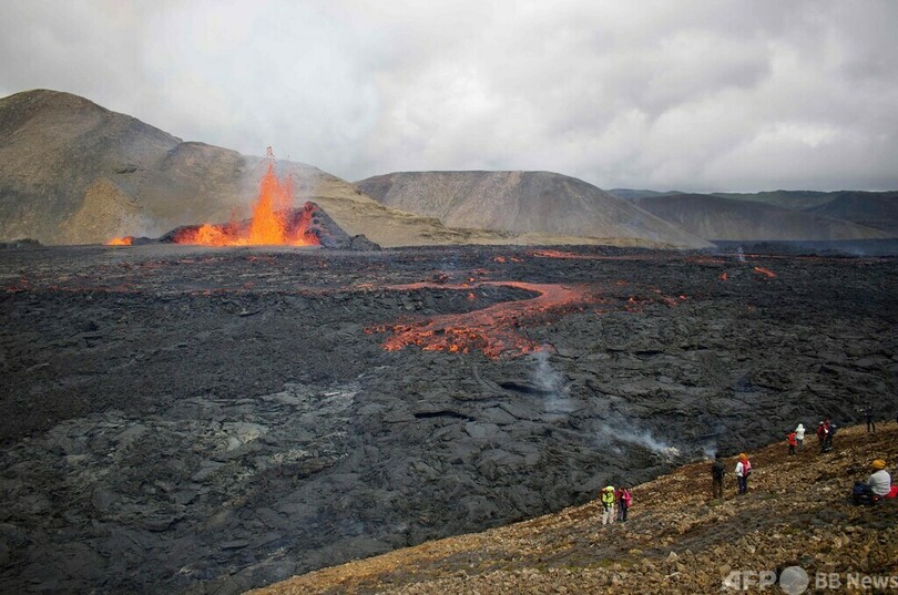 【8月12日 AFP】アイスランドの首都レイキャビクから40キロほど離れたメラタリル(Meradalir)渓谷に、今月3日に噴火した火山を一目見ようと大勢が集まっている。皆、険しいでこぼこの山道を数時間かけて登りやって来る。