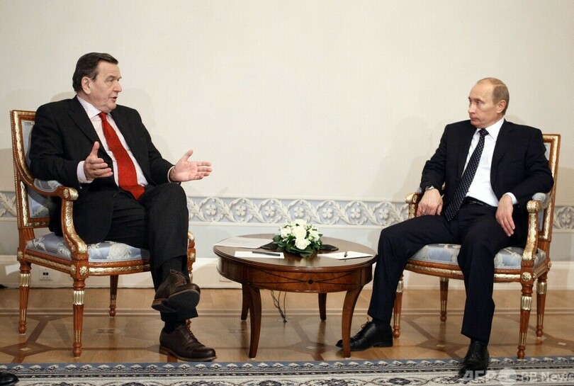 ただ同氏は、ロシア大統領府(クレムリン、Kremlin)と緊密な関係を維持しており、先月にはウラジーミル・プーチン(Vladimir Putin)大統領と会談した。シュレーダー氏は会談後、ロシアには戦争の「交渉による解決」の用意があると発言し、ウクライナのウォロディミル・ゼレンスキー(Volodymyr Zelensky)大統領は「不快極まる」と反発していた。(c)AFP