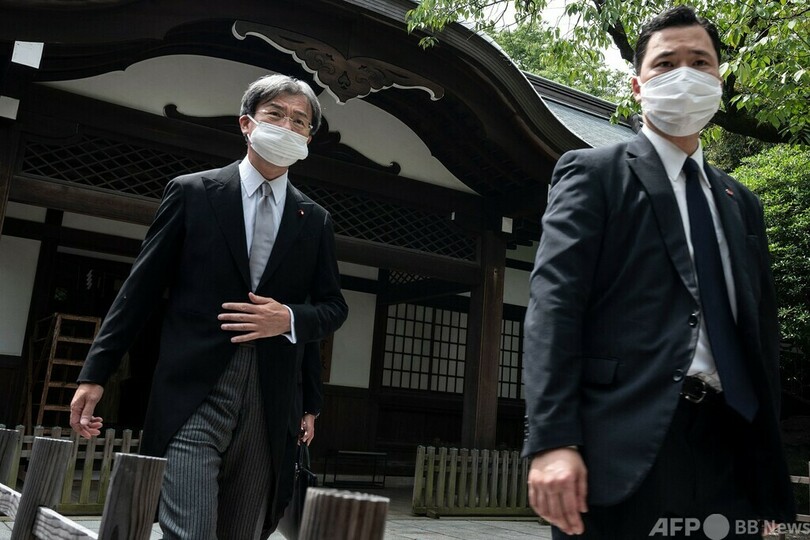 【8月16日 AFP】終戦の日を迎えた15日、高市早苗(Sanae Takaichi)経済安全保障担当相と秋葉賢也(Kenya Akiba)復興相が靖国神社(Yasukuni Shrine)を参拝した。