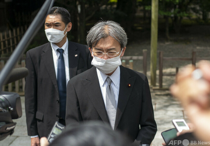 【8月16日 AFP】終戦の日を迎えた15日、高市早苗(Sanae Takaichi)経済安全保障担当相と秋葉賢也(Kenya Akiba)復興相が靖国神社(Yasukuni Shrine)を参拝した。