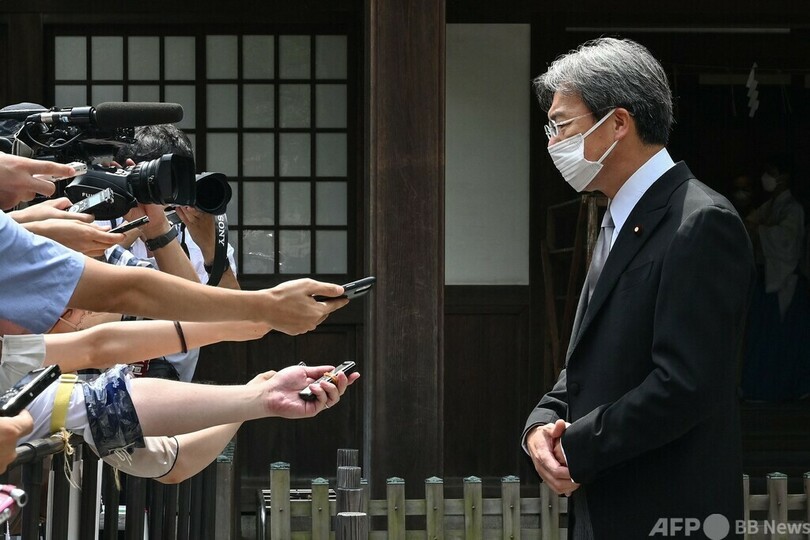 【8月16日 AFP】終戦の日を迎えた15日、高市早苗(Sanae Takaichi)経済安全保障担当相と秋葉賢也(Kenya Akiba)復興相が靖国神社(Yasukuni Shrine)を参拝した。