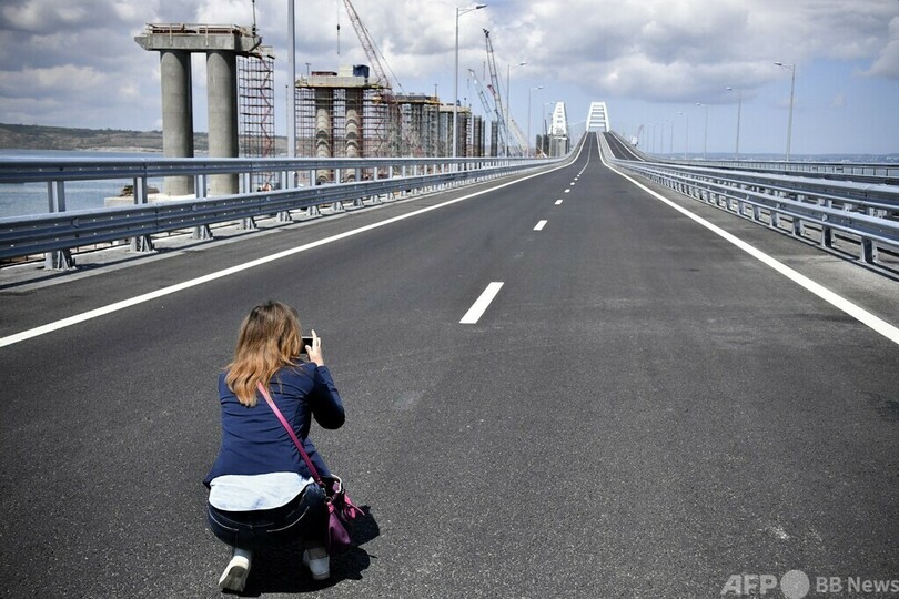 ケルチ(Kerch)海峡を渡る全長19キロのクリミア橋は、ロシアのウラジーミル・プーチン(Vladimir Putin)大統領の命令で建設され、18年に開通。同国にとって、クリミア半島への軍民両用の主要輸送路となっている。