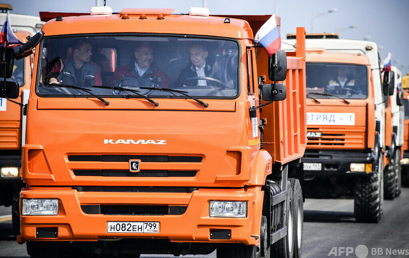 ケルチ(Kerch)海峡を渡る全長19キロのクリミア橋は、ロシアのウラジーミル・プーチン(Vladimir Putin)大統領の命令で建設され、18年に開通。同国にとって、クリミア半島への軍民両用の主要輸送路となっている。