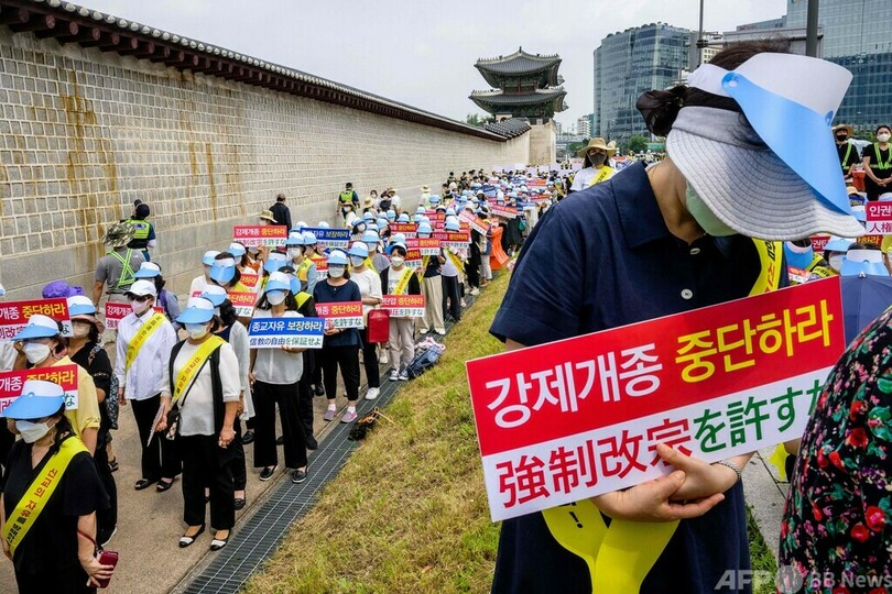 【8月18日 AFP】韓国の首都ソウルで18日、世界平和統一家庭連合(旧統一教会、Unification Church)の信者らが、安倍晋三(Shinzo Abe)元首相が銃撃され死亡した事件の後、日本国内で同連合に批判的な報道が行われていることに抗議するデモ活動を行った。(c)AFP
