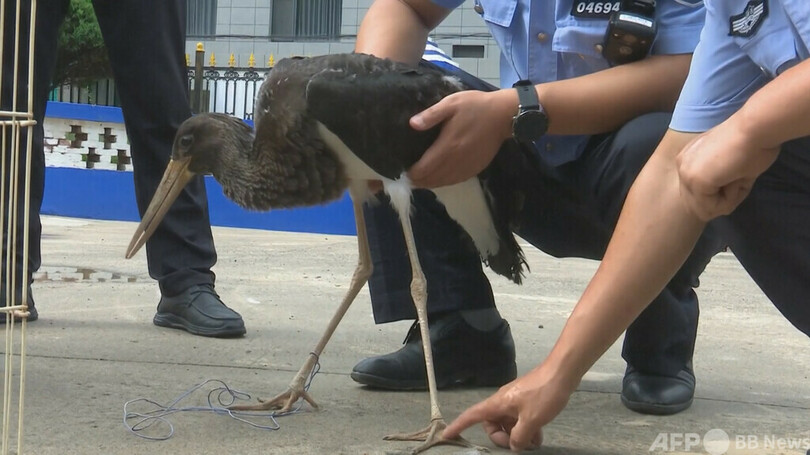 【8月19日 CGTN Japanese】中国北西部の陝西省(Shaanxi)で、農家の庭にいた黒コウノトリが救助されました。