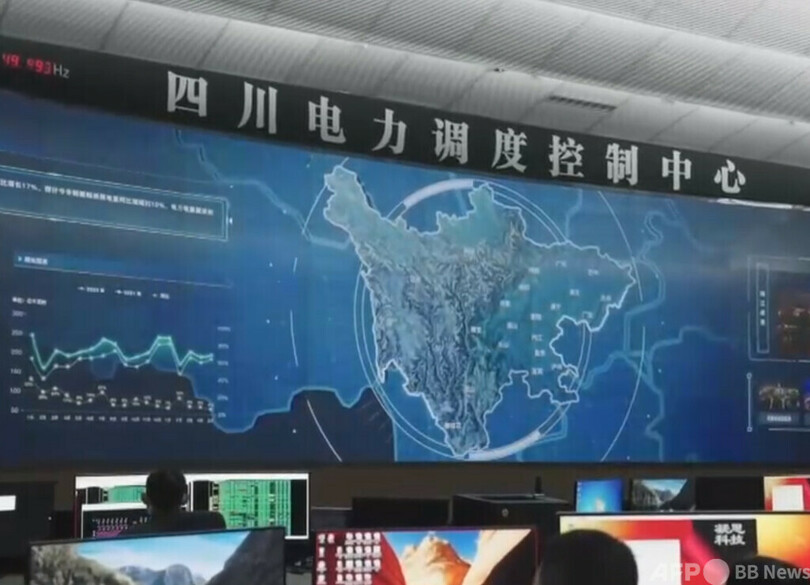 国有電力会社・国家電網有限公司の四川電力コントロールセンターでエンジニアを務める周剣氏によりますと、四川省の電力供給の8割以上は水力発電によるもので、今年は高温と干ばつで各河川流域の水量が急速に減少し、主な水力発電所の発電量は既に最低レベルまで下がって、全省の水力発電能力は5割以下に減少したということです。(c)CGTN Japanese/AFPBB News
