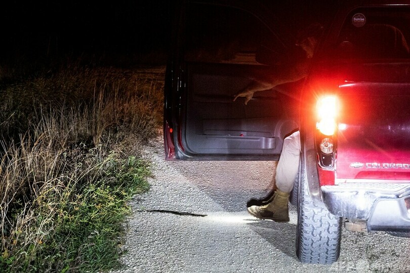 日が暮れた後、自動車で舗装道路や砂利道を何キロもゆっくりと走り、草深いニシキヘビの生息地へと分け入る。懐中電灯を照らすと時折水辺でアリゲーターの目が光る。