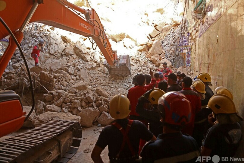 救急当局によると、3人の子どもが救助された。「状態は良好」で、病院で経過を観察しているという。(c)AFP/Salman Amin