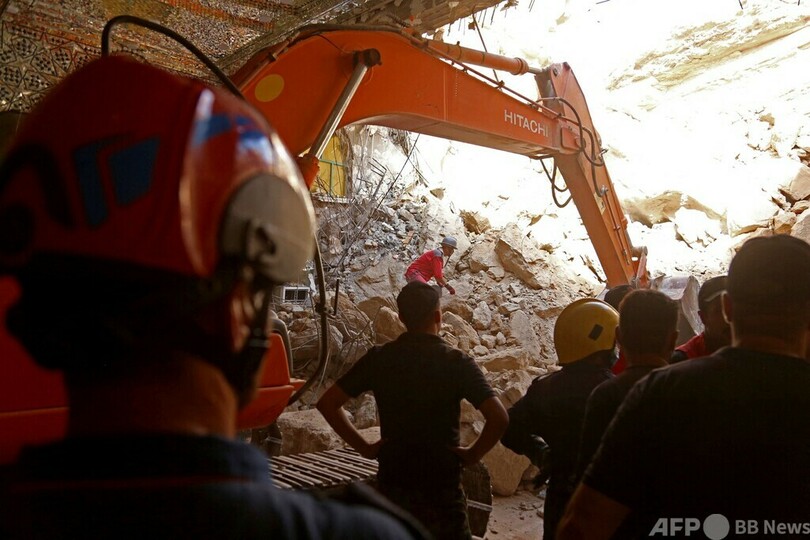 救急当局によると、3人の子どもが救助された。「状態は良好」で、病院で経過を観察しているという。(c)AFP/Salman Amin
