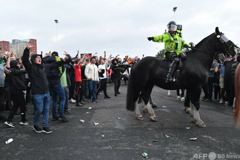 【8月23日 AFP】22-23イングランド・プレミアリーグ第2節終了時点で最下位だったマンチェスター・ユナイテッド(Manchester United)のファンが22日、リバプール(Liverpool FC)との第3節を前に本拠地オールド・トラフォード(Old Trafford)に向かって抗議のデモ行進を行い、オーナーのグレーザー(Glazer)家に怒りの矛先を向けた。