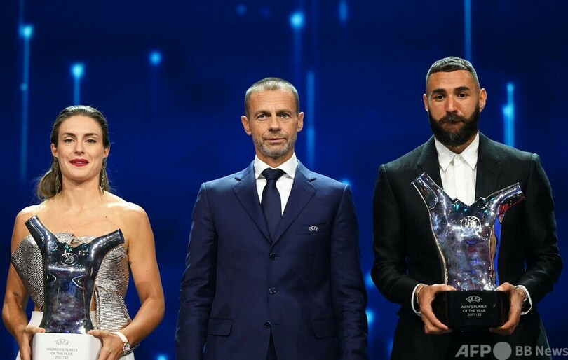 【8月26日 AFP】2021-22シーズンのサッカー欧州最優秀選手賞(UEFA Player of the Year Award)授賞式が25日、トルコ・イスタンブールで開催され、男子部門ではレアル・マドリード(Real Madrid)の欧州チャンピオンズリーグ(UEFA Champions League 2021-22)制覇に貢献したフランス代表FWのカリム・ベンゼマ(Karim Benzema)が選出された。