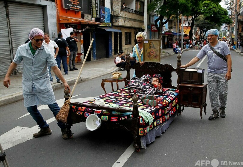 ニュース ライフ 今日の1枚 【今日の1枚】警察官のガードで安眠、「世界怠惰の日」のパレード 2022年9月2日 12:15 発信地:イタグイ/コロンビア [ コロンビア 中南米 ] このニュースをシェア ‹ › ❮ 2/4 ❯ コロンビア・イタグイで行われた「世界怠惰の日」を祝うパレードで、女性が横たわるベッドを押す男性ら(2022年8月21日撮影)。(c)Fredy Builes / AFP 画像作成中 ! 【9月2日 AFP】コロンビア・イタグイ(Itagui)で行われた「世界怠惰の日(World Day of Laziness)」を祝うパレードで、参加者のベッドを押す警察官。(c)AFP ライフ 一覧へ> メディア・報道関係・法人の方向け 写真・動画 購入のお問合せ>