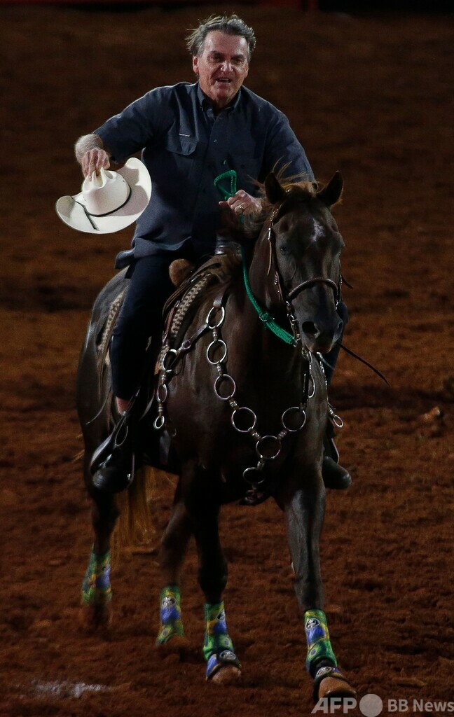 ニュース 政治・経済 ブラジル大統領、乗馬姿を披露 2022年8月27日 15:37 発信地:バレトス/ブラジル [ ブラジル 中南米 ] このニュースをシェア ‹ › ❮ 6/12 ❯ ブラジル・サンパウロ州バレトスのカウボーイフェスティバルで、馬に乗るジャイル・ボルソナロ大統領(2022年8月26日撮影)。(c)Miguel SCHINCARIOL / AFP 画像作成中 ! 【8月27日 AFP】ブラジルのジャイル・ボルソナロ(Jair Bolsonaro)大統領は26日、サンパウロ(Sao Paulo)州バレトス(Barretos)のカウボーイフェスティバルで乗馬姿を披露した。(c)AFP 政治・経済 一覧へ> メディア・報道関係・法人の方向け 写真・動画 購入のお問合せ>