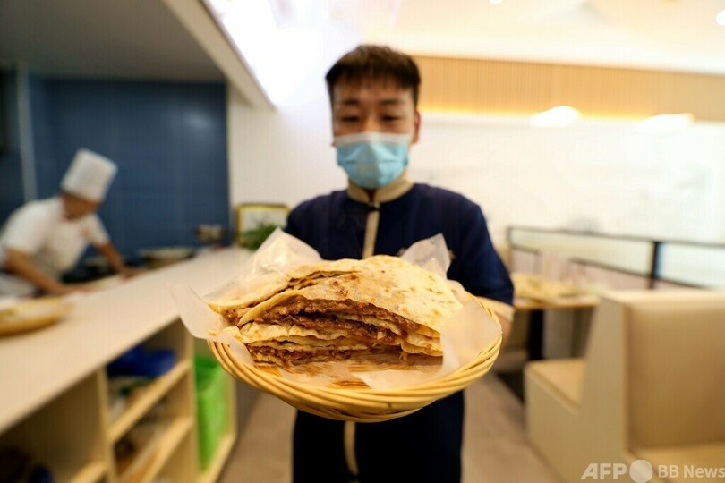 香河県の人びとは日本や米国などで肉餅店をオープンしており、今年の北京冬季五輪では選手村の中華料理のメニューに香河肉餅が加わり、多くの選手の舌を楽しませた。香河肉餅協会は「香河肉餅」の商標登録を行い、肉餅の作り方の標準化とさらなる技術開発に取り組んでいる。(c)CNS/JCM/AFPBB News