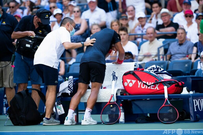 83分に及んだ過酷な第2セットを落とした後、世界ランキング37位のバエスはメディカルタイムアウトでトレーナーを呼んだが、第3セットの第2ゲームが終了した段階で途中棄権を決めた。