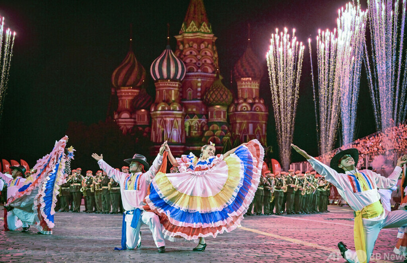 【9月4日 AFP】ロシアの首都モスクワの赤の広場(Red Square)で国際軍楽フェスティバル「スパスカヤ塔(Spasskaya Tower)」が開催され、音楽隊のパフォーマンスや花火など、華やかな光景が繰り広げられた。(c)AFP