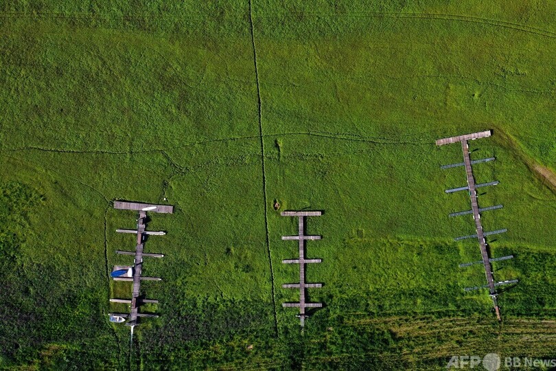 ニュース 環境・科学 干上がった貯水湖、草に囲まれる桟橋 ドイツ 2022年9月5日 9:30 発信地:エーダー湖/ドイツ [ ドイツ ヨーロッパ ] このニュースをシェア ‹ › ❮ 4/20 ❯ 干ばつで干上がったドイツ・ヘッセン州の貯水湖、エーダー湖の桟橋の空撮写真(2022年8月29日撮影)。(c)Ina FASSBENDER / AFP 画像作成中 ! 【9月5日 AFP】ドイツは数週間にわたって干ばつが続き、中部ヘッセン(Hesse)州ワルデック(Waldeck)近郊の貯水湖、エーダー湖(Edersee)はかつてないほど水量が減った。 同州最大の湖であるエーダー湖では、ボートや桟橋が水のなくなった湖底に茂った草に囲まれ、通常は深さ数メートルの水中にある橋などが姿を現した。(c)AFP 環境・科学 一覧へ> メディア・報道関係・法人の方向け 写真・動画 購入のお問合せ>