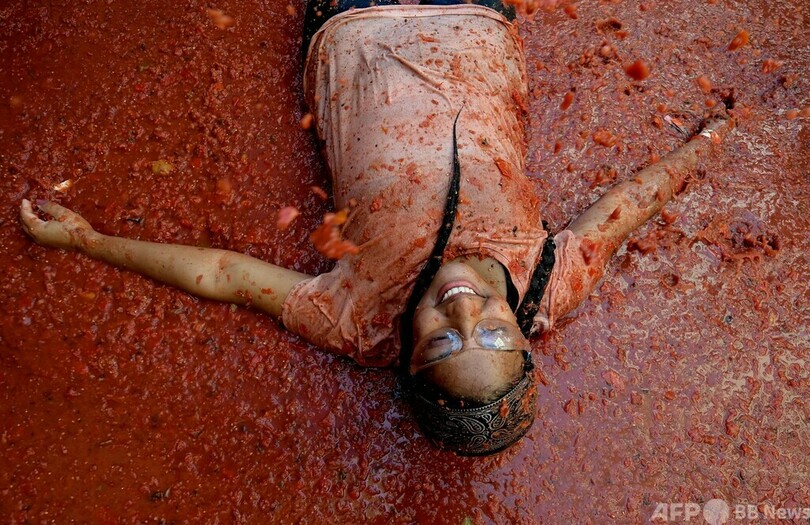 【9月1日 AFP】スペイン東部ブニョール(Bunol)で8月31日、恒例のトマト祭り「トマティーナ(Tomatina)」が開催された。新型コロナウイルスの影響で2年間中止されていた。