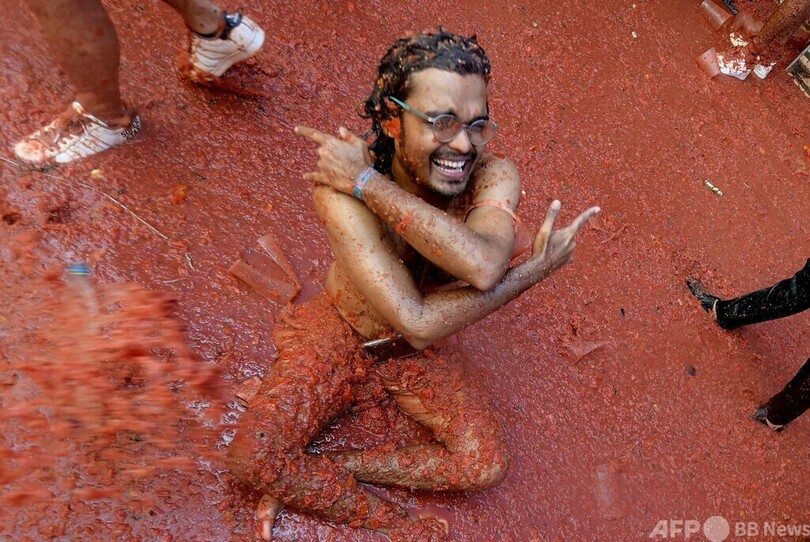 【9月1日 AFP】スペイン東部ブニョール(Bunol)で8月31日、恒例のトマト祭り「トマティーナ(Tomatina)」が開催された。新型コロナウイルスの影響で2年間中止されていた。