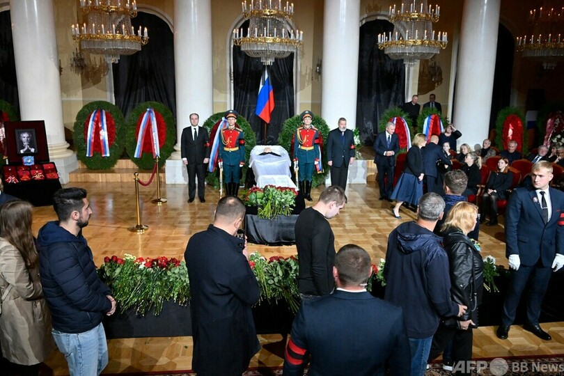 モスクワの労働組合会館「円柱の間(Column Hall)」で執り行われた告別式には儀仗(ぎじょう)兵が派遣され、集まった多くの市民がロシア国旗の下に安置されたゴルバチョフ氏に最後の別れを告げた。