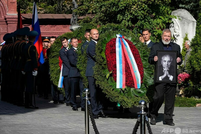 【9月4日 AFP】先月30日に91歳で死去した旧ソ連最後の指導者ミハイル・ゴルバチョフ(Mikhail Gorbachev)元大統領の葬儀・告別式が3日、モスクワで営まれた。ウラジーミル・プーチン(Vladimir Putin)大統領は公務を理由に欠席し、外国要人の参列もハンガリーのオルバン・ビクトル(Viktor Orban)首相のみと、静かな別れとなった。