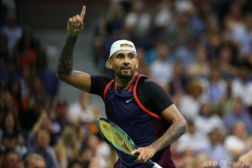 【9月5日 AFP】(更新)全米オープンテニス(US Open Tennis Championships 2022)は4日、男子シングルス4回戦が行われ、大会第23シードのニック・キリオス(Nick Kyrgios、オーストラリア)は7-6(13-11)、3-6、6-3、6-2で連覇を狙った第1シードのダニール・メドベージェフ(Daniil Medvedev)を破り、自身初の8強入りを果たした。