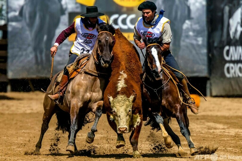 この競技会では、実際の作業状況を再現し、クリオージョ種の乗馬術やコントロール技術が評価される。(c)AFP