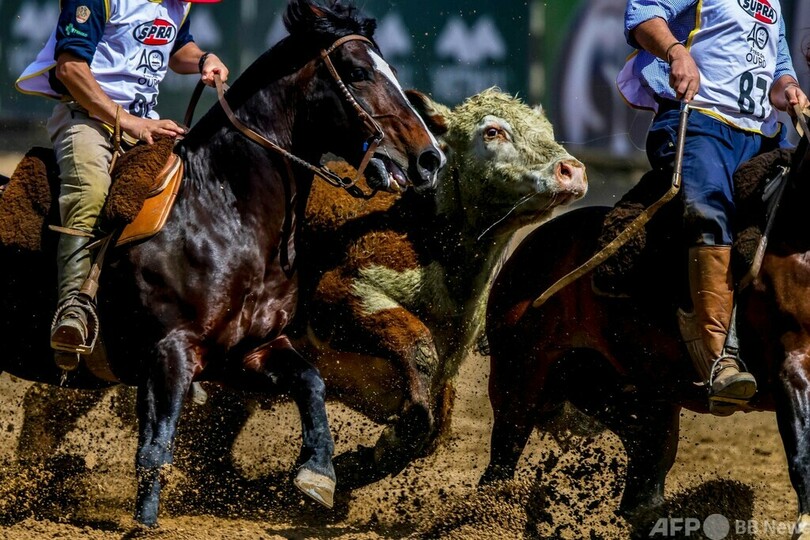 この競技会では、実際の作業状況を再現し、クリオージョ種の乗馬術やコントロール技術が評価される。(c)AFP