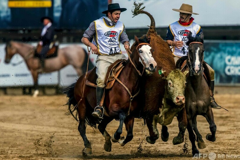 この競技会では、実際の作業状況を再現し、クリオージョ種の乗馬術やコントロール技術が評価される。(c)AFP