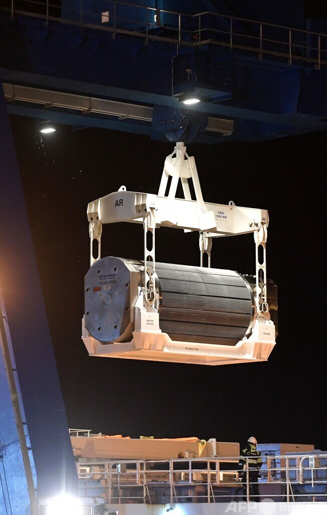 【9月7日 AFP】フランス北部シェルブール(Cherbourg)港に7日未明、日本に輸送される使用済み核燃料から取り出したプルトニウムで作る「MOX燃料」が到着した。AFPのフォトグラファーが確認した。
