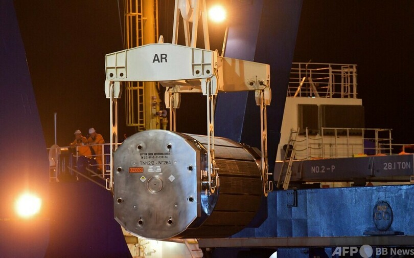 【9月7日 AFP】フランス北部シェルブール(Cherbourg)港に7日未明、日本に輸送される使用済み核燃料から取り出したプルトニウムで作る「MOX燃料」が到着した。AFPのフォトグラファーが確認した。