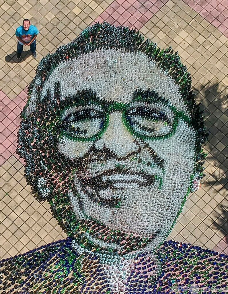 【9月8日 AFP】使用済みの空き瓶で描かれた、コロンビアを代表する作家ガブリエル・ガルシア・マルケス(Gabriel Garcia Marquez、1927~2014年)の肖像。同国北部ボリバル(Bolivar)県トゥルバコ(Turbaco)のバンデラス広場(Plaza de Banderas)で、アーティストのエドゥアルド・ブトロン(Eduardo Butron)さんが手掛けた。(c)AFP