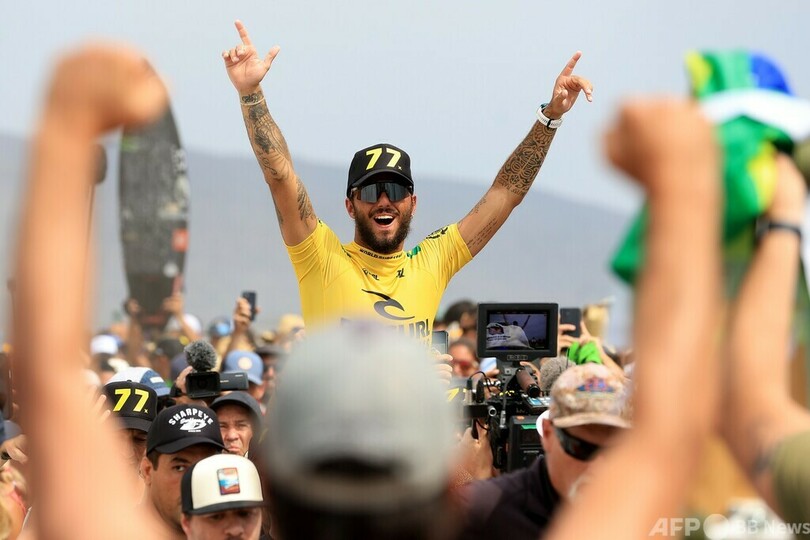 男子では、フィリペ・トレド(Filipe Toledo、ブラジル)が同胞のイタロ・フェレイラ(Italo Ferreira)を決勝で下し、初の年間王者となった。(c)AFP