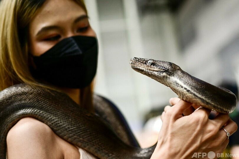【9月9日 AFP】タイの首都バンコクで8日、ペット用品などの展示会「ペット・エキスポ・チャンピオンシップ(Pet Expo Championship)」が開幕した。会場では犬やオウム、ヘビなど、さまざま動物の姿が見られた。(c)AFP