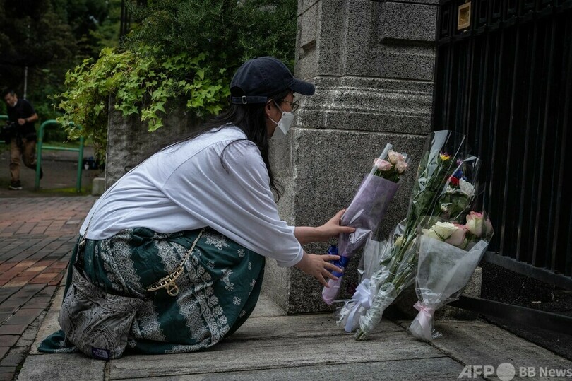 【9月10日 AFP】(写真追加、更新)英国のエリザベス女王(Queen Elizabeth II)の死去を受け、東京都内の英国大使館では、弔意を示す半旗が掲げられ、門の前に花を手向ける人が相次いだ。