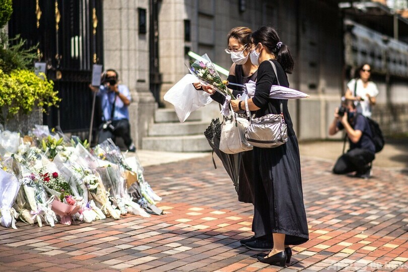 【9月10日 AFP】(写真追加、更新)英国のエリザベス女王(Queen Elizabeth II)の死去を受け、東京都内の英国大使館では、弔意を示す半旗が掲げられ、門の前に花を手向ける人が相次いだ。