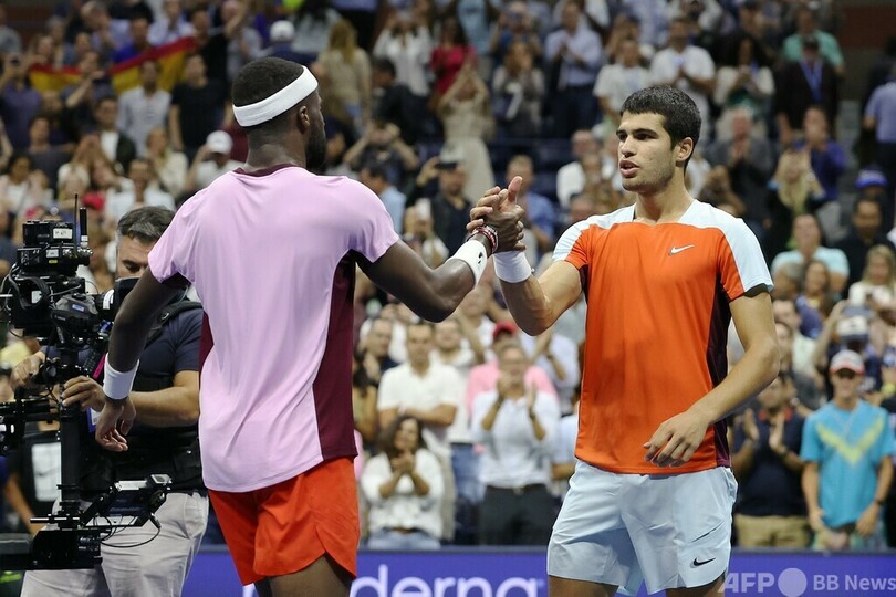 【9月10日 AFP】(更新)全米オープンテニス(US Open Tennis Championships 2022)は9日、男子シングルス準決勝が行われ、大会第3シードのカルロス・アルカラス(Carlos Alcaraz、スペイン)は6-7(6-8)、6-3、6-1、6-7(5-7)、6-3で第22シードのフランシス・ティアフォー(Frances Tiafoe、米国)を下し、自身初となる四大大会(グランドスラム)決勝進出を決めた。