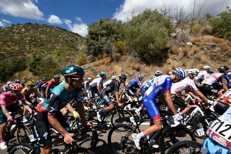 総合首位に立つクイックステップ・アルファビニール(Quick-Step Alpha Vinyl)のレムコ・エベネプール(Remco Evenepoel、ベルギー)はトップ集団内でステージを終え、同2位につけるモビスター・チーム(Movistar Team)のエンリク・マス(Enric Mas、スペイン)との2分7秒差を守った。3番手には5分14秒差でUTE(UAE TEAM EMIRATES)のフアン・アユソ(Juan Ayuso、スペイン)が続いている。(c)AFP