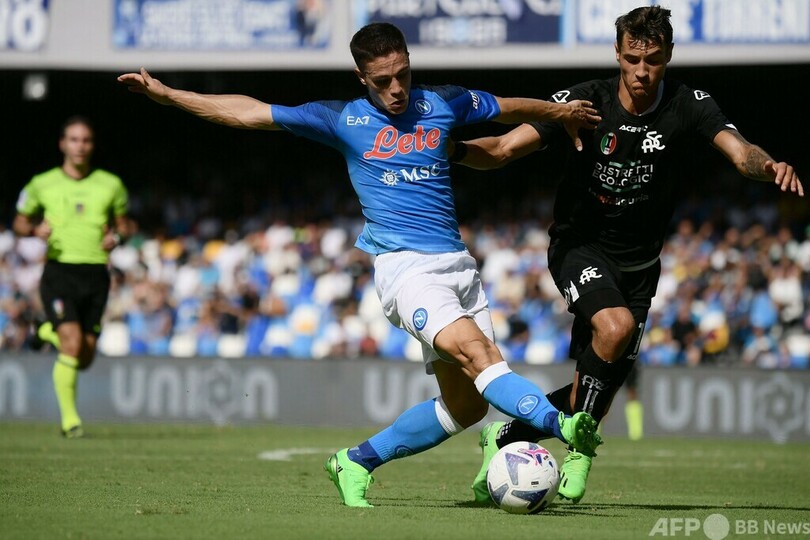 【9月11日 AFP】22-23イタリア・セリエAは10日、第6節の試合が行われ、ナポリ(SSC Napoli)はジャコモ・ラスパドーリ(Giacomo Raspadori)のゴールでスペツィア(Spezia)に1-0で勝利。数的不利の中2-1でサンプドリア(Sampdoria)を退けたACミラン(AC Milan)を得失点差で上回るナポリが、暫定首位に立った。