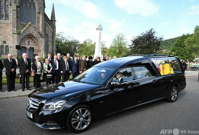 【9月11日 AFP】(更新、写真追加)英国のエリザベス女王(Queen Elizabeth II)は11日、最後の旅路についた。女王のひつぎを乗せた車が午前10時7分、スコットランド北東部のバルモラル城(Balmoral Castle)を出発。まず6時間かけてエディンバラに運ばれるが、沿道には別れを告げようと多くの国民が集まるとみられる。