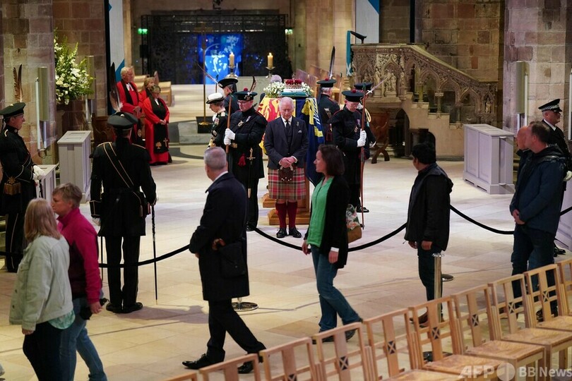 【9月13日 AFP】エリザベス英女王(Queen Elizabeth II)のひつぎが公開安置されているスコットランド・エディンバラの聖ジャイルズ大聖堂(St Giles' Cathedral)で12日、チャールズ国王(King Charles III)をはじめとする女王の子女4人が、ひつぎを囲む儀式を行った。