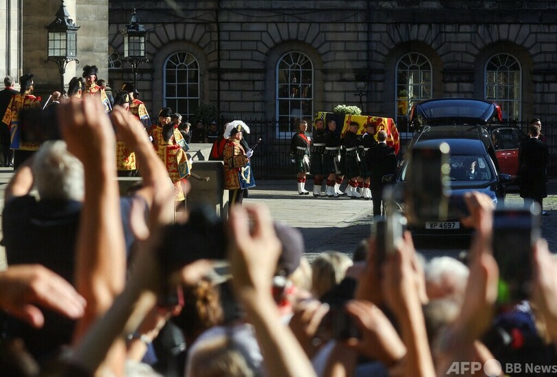 【9月14日 AFP】英国の故エリザベス女王(Queen Elizabeth II)のひつぎが13日、スコットランド・エディンバラ(Edinburgh)の聖ジャイルズ大聖堂(St Giles' Cathedral)から首都ロンドンに向けて出発した。19日の国葬に先立ち、同市で一般市民向けに公開安置される予定。