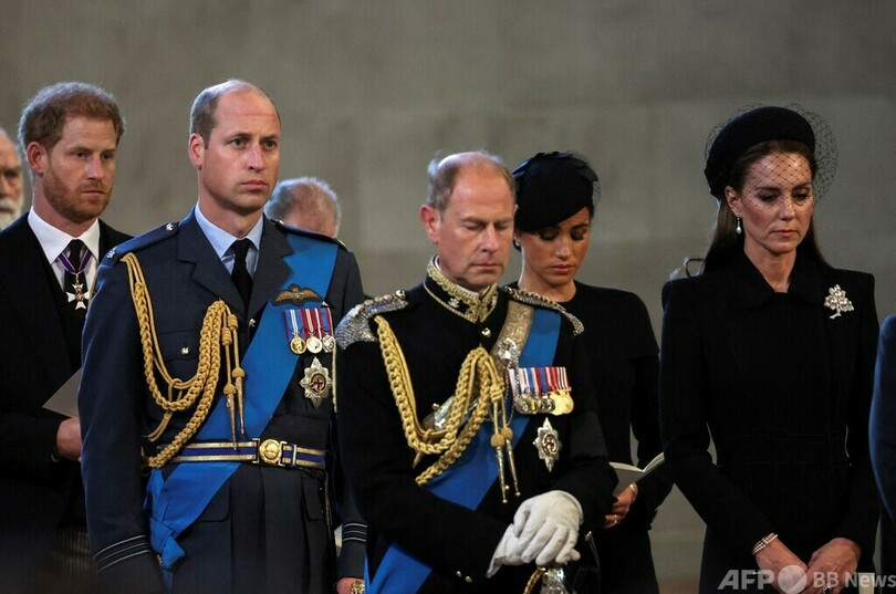 【9月15日 AFP】英国のエリザベス女王(Queen Elizabeth II)のひつぎが14日、首都ロンドンのバッキンガム宮殿(Buckingham Palace)を離れ、国会議事堂のウェストミンスターホール(Westminster Hall)に公開安置された。女王の「最後の旅路」に付き添った王族の様子を、写真で伝える。(c)AFP