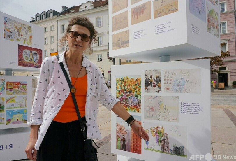 両国大使館の協力で実現した野外展覧会のキュレーター、ドロタ・サドウスカ(Dorota Sadowska)さんは「子どもたちが戦争をどう見ているか、何を感じて、何を伝えようとしているか、(中略)どの絵もとてもよく似ています」と語る。「そこに見えるのは、ただひたすら苦しみです」