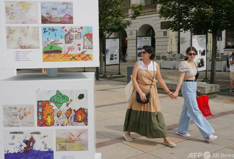 【9月18日 AFP】戦争はどの時代にどこで起きても、「小さな市民」たちの目には同じように映っている──第2次世界大戦(World War II)後のポーランドと今日のウクライナの子どもたちによる戦争画展「Mom, I See War(ママ、戦争だ)」が、ポーランドの首都ワルシャワで行われている。